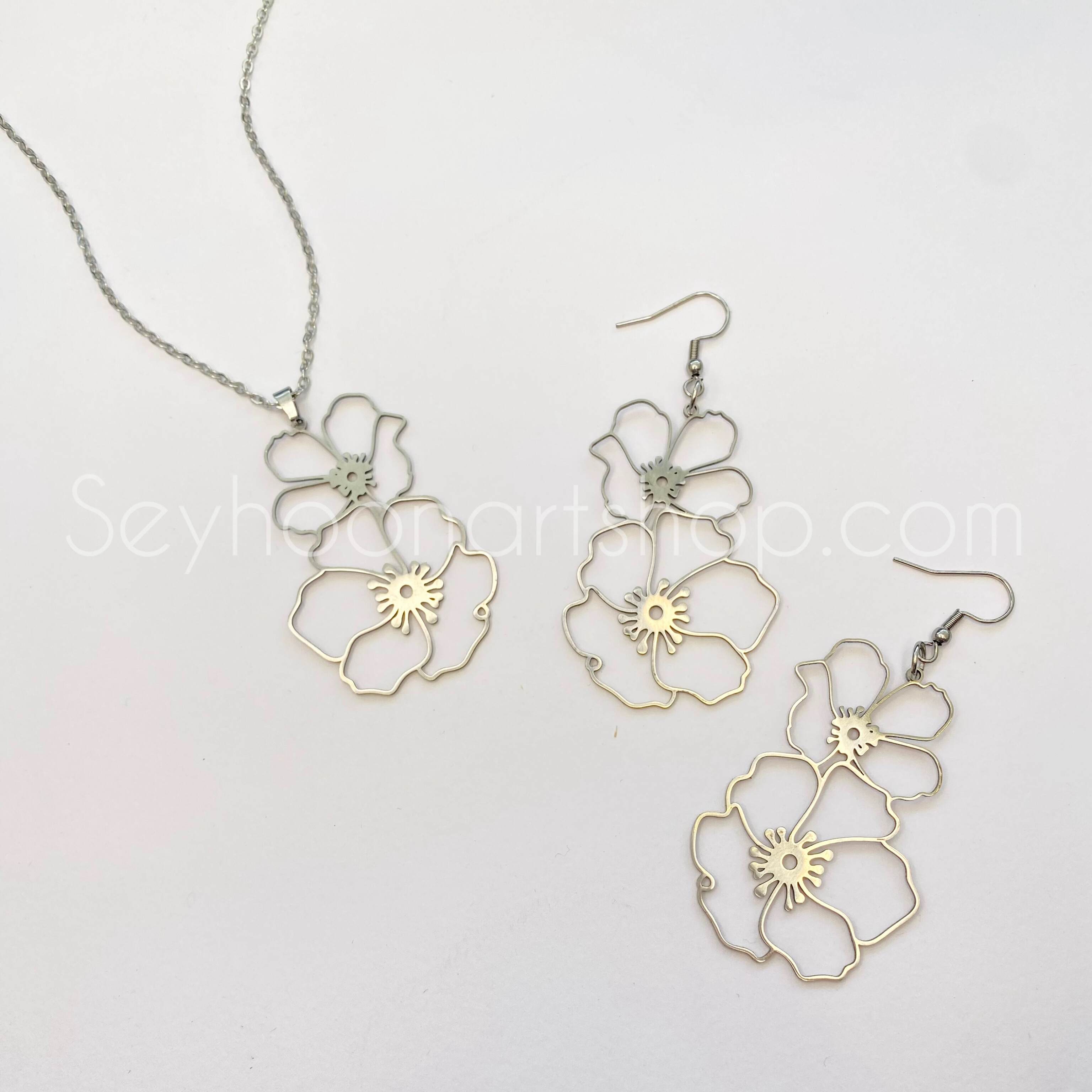 فریم گردنبند و گوشواره استیل شکوفه ساکورا (کل بدنه تماما استیل) - رنگ ثابت