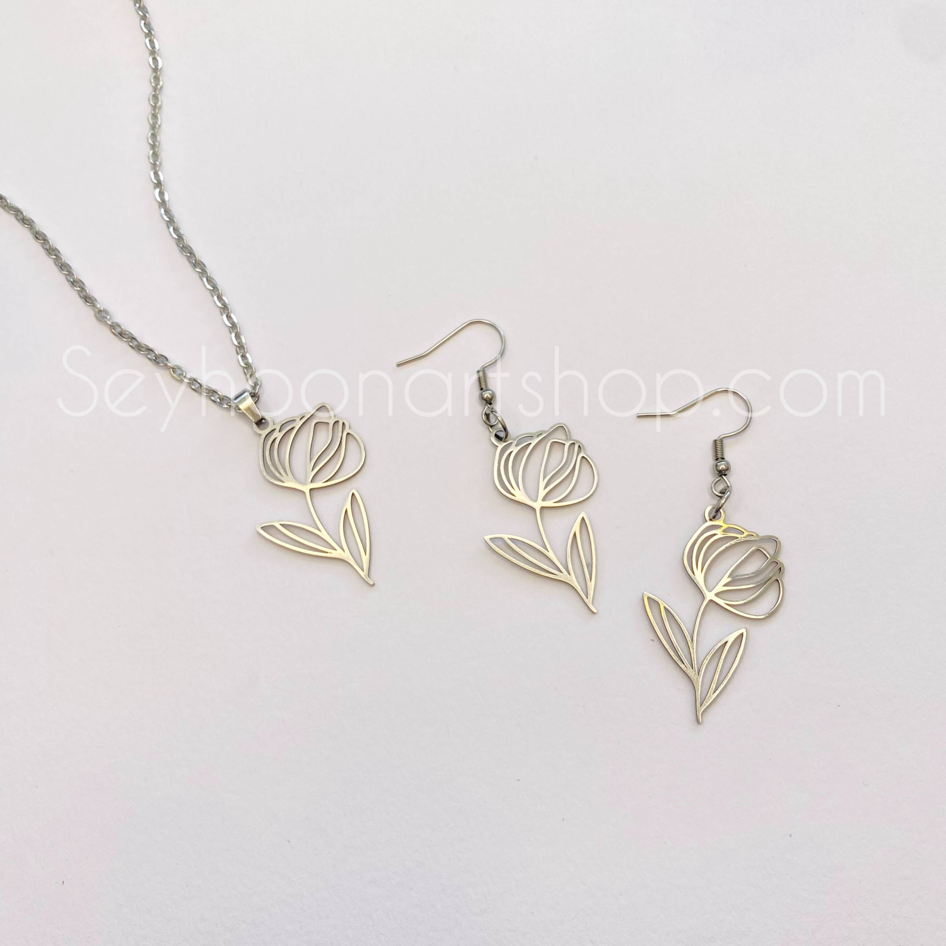فریم گردنبند و گوشواره استیل گل لاله (کل بدنه تماما استیل) ـ رنگ ثابت